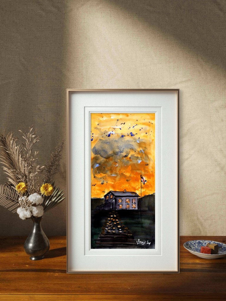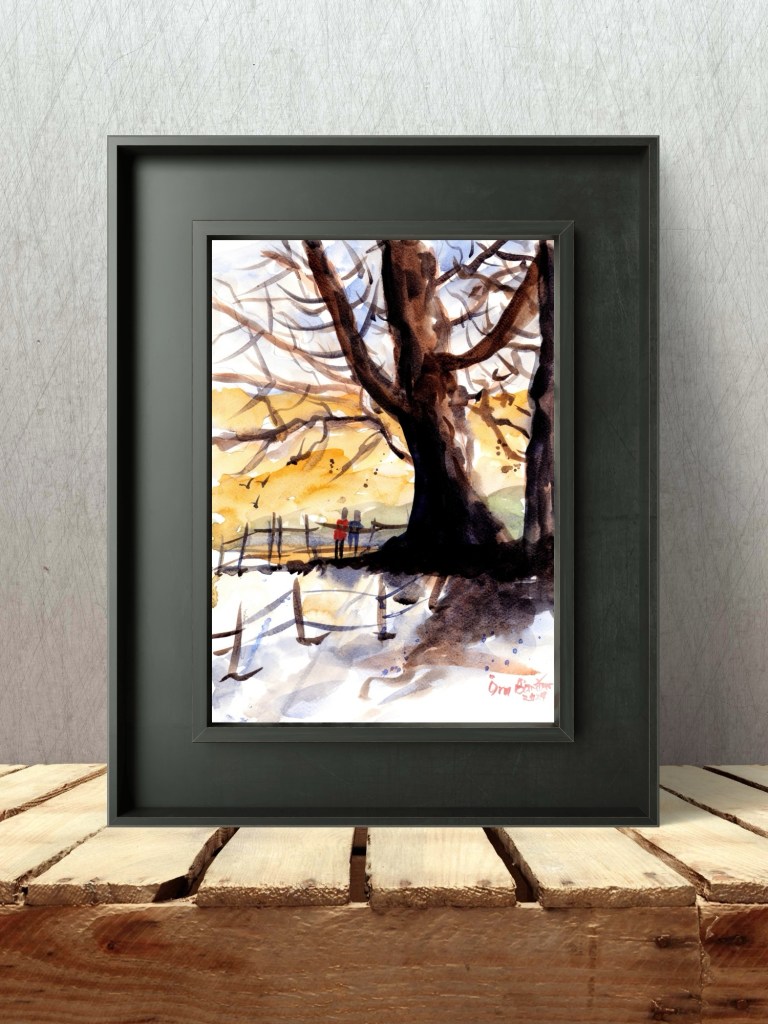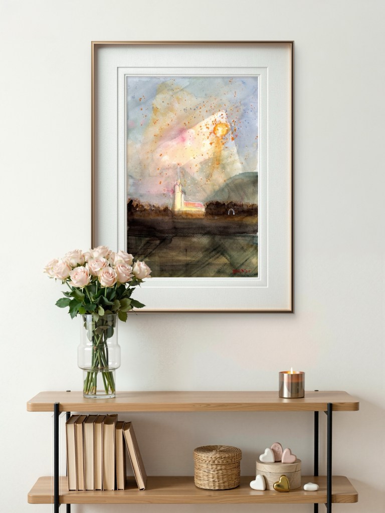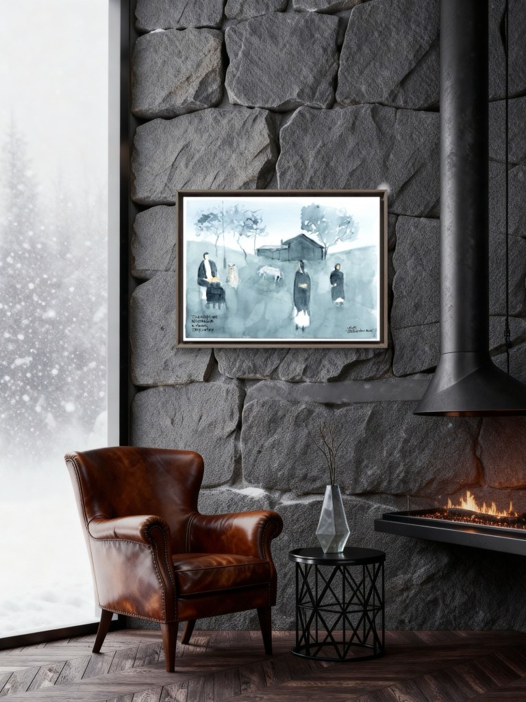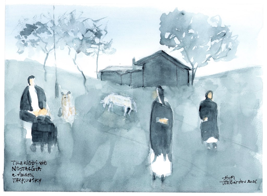 Tilbrigði við upphafsatriði myndarinnar NOSTALGÍA e. Andrei Tarkovsky sem ég fann í bók dr. Gunnlaugs Andreasar Jónssonar, Áhrifasaga Saltarans. Vatnslitamyndina gerði Örn Bárður á Hofi í Vopnafirði árið 2025 eftir lestur bókarinnar