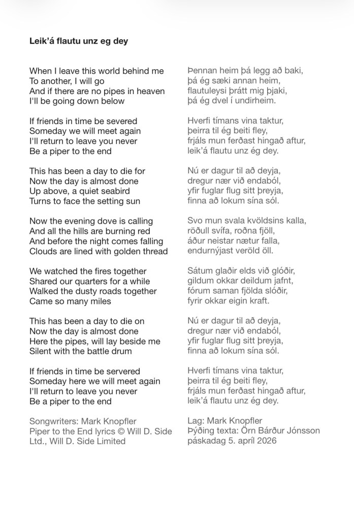 Þýddi texta við lag Marks Knopfler Piper to the End. Þú getur horft á myndband með honum og hlustað neðanmáls.