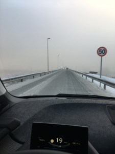 Første dag etter vintersolhverv, fredag 22. desember, kjørte jeg veien ut på Nes og til Helgøya for å forrette ved en bisettelse kl. 13.30. Det var omkring -10 grader og frostroser på alle løvtrer som hadde mistet sitt løv i høst. Da jeg kom til Tingnes var det frosttåke over sundet og broen som kopler Nes og Helgøy så ikke bra ut.