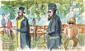 I had my sketchbook with me and sketched this picture during the liturgy and then colored it with water colours when I got home.