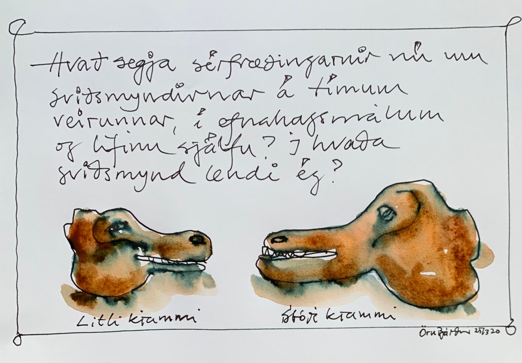 „Veröldin öll er leikhús“, sagði enska stórskáldið Spjararskekill. Við erum víst öll í hlutverkum á ýmsum sviðum í henni veröld þar sem við tjáum okkur um margt og sumir nú á þessum síðustu og verstu tímum eins og sviðakjammar.