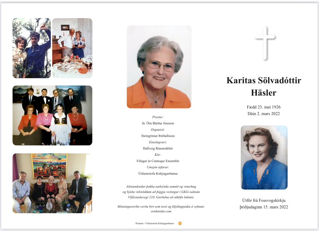 Guð blessi minningu Karitasar Sölvadóttur Häsler og góður Guð blessi þig sem enn ert á lífshafinu. Amen.