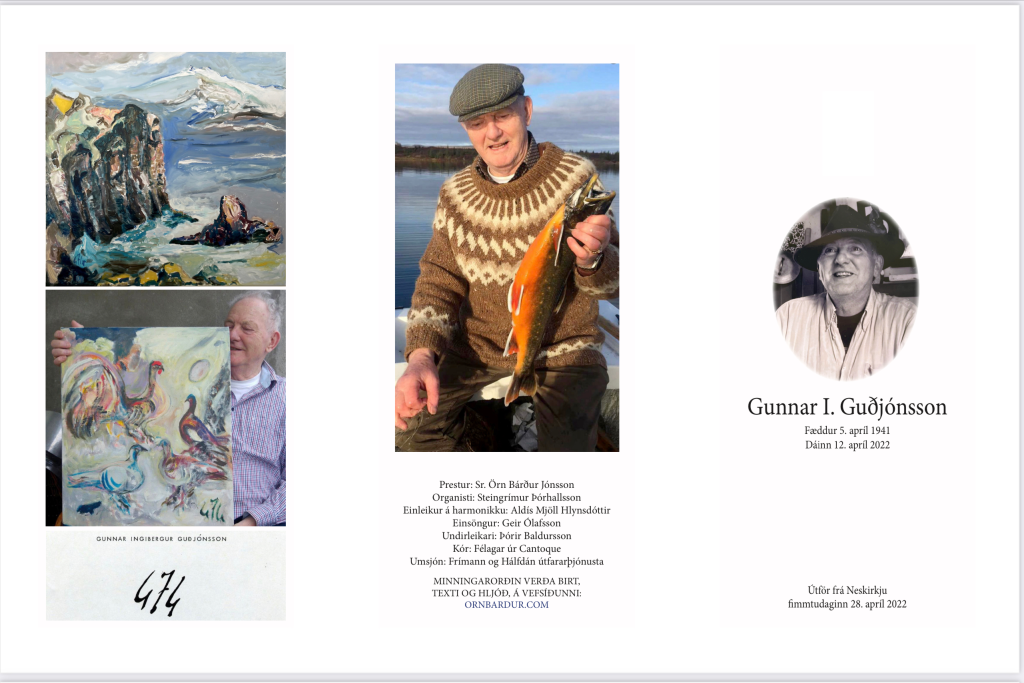 Gunnar var gleðigjafi, brosmildur, sagði margar meinlausar sögur af sjálfum sér og öðru fólki af mikilli innlifun. Ég hef ætíð farið sparlega með orðið lífskúnstner en það orð get ég vel tekið mér í munn um Gunnar. Hann var náttúrubarn, listmálari og veiðimaður lungann úr ævi sinni.