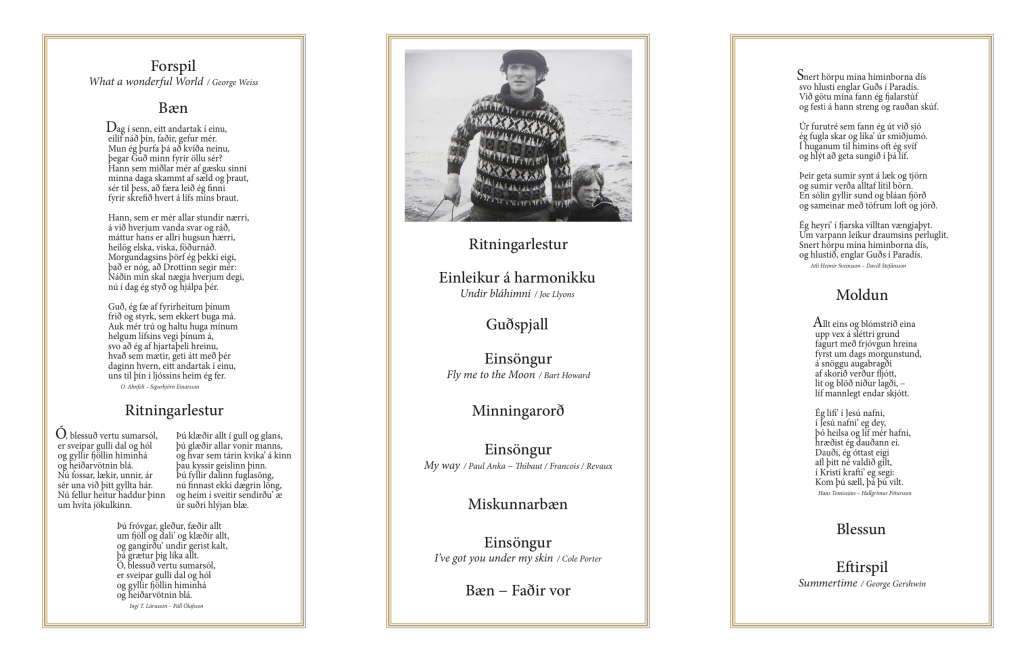 Útför er kveðju- og sorgarstund, en hún er einnig í þessu tilfelli og flestra annarra látinna, þakkarhátíð fyrir það líf sem lifað var af ástríðu og gleði.
