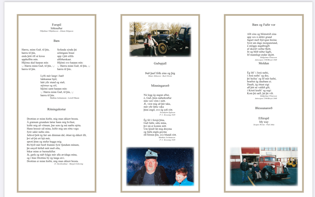 Guð blessi minningu hans og Guð varðveiti þig á lífsveginum og leiði þig inn í sælu himinsins í fyllingu tímans, eins og fóstur sem fær að sjá ljósið í fyrsta sinn.