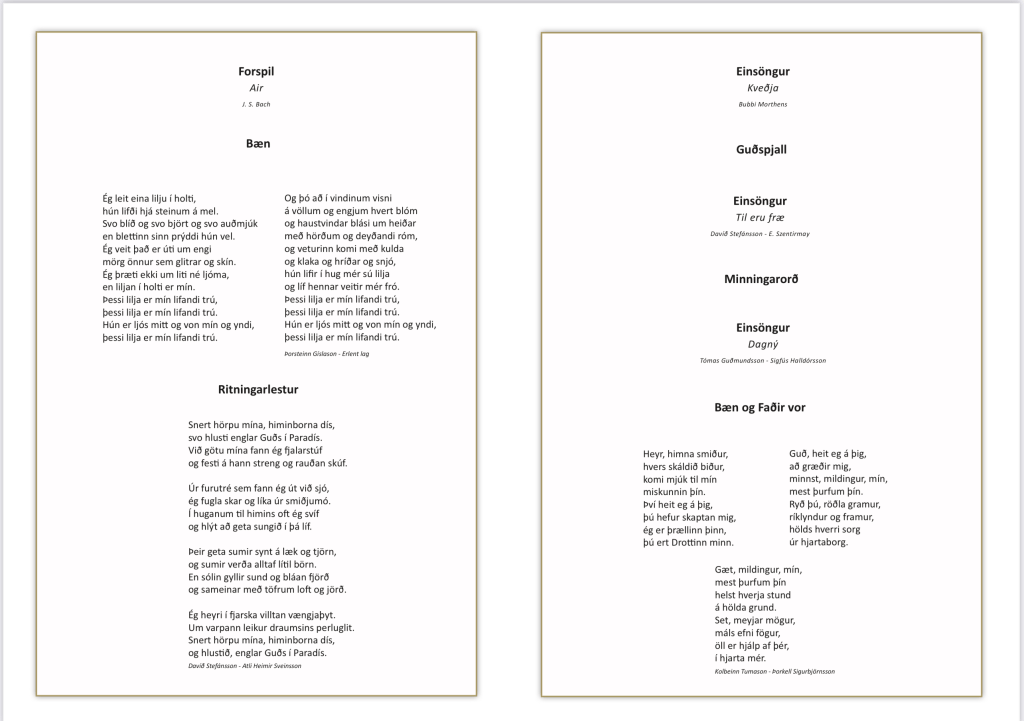 Sálmaskráin er neðanmáls, svo og Biblíutextar sem lesnir voru.