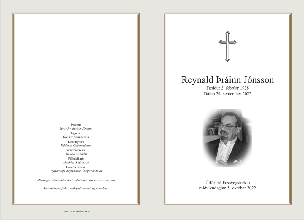 Reynald Þráinn Jónsson, hét hann fullu nafni og fæddist á Dalvík 3. febrúar 1938, hann lést á hjúkrunarheimilinu Ísafold í Garðabæ 24. september 2022.
