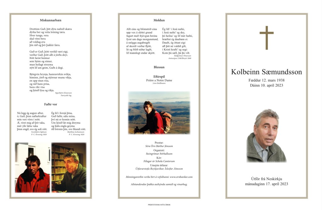 Kolbeinn lést á hjúkrunarheimilinu Grund, mánudaginn 10. apríl s.l., 85 ára gamall og tæpum mánuði betur.