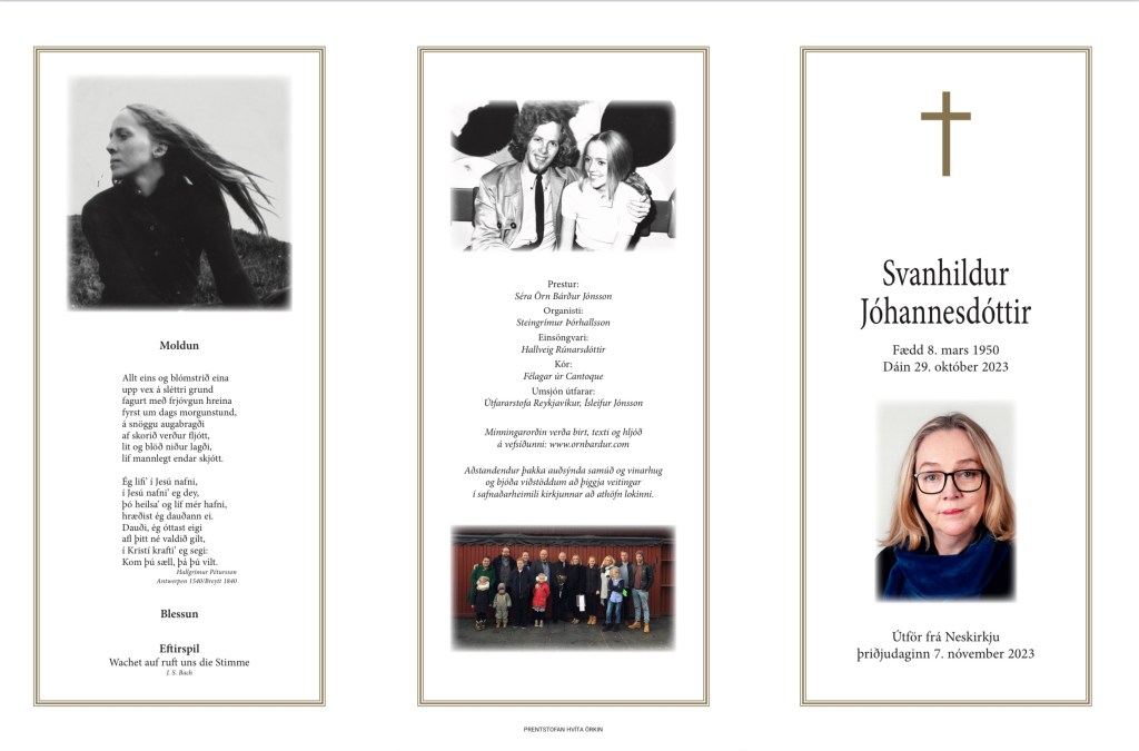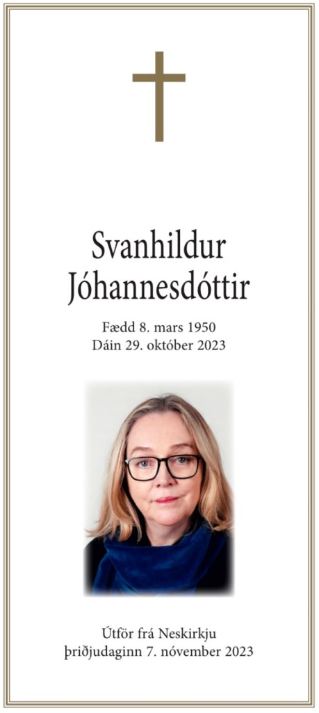 Svaný var fjölhæf. Hún var listræn og hög, prjónaði, saumaði og málaði. Hún var orkumikil og vildi gjarnan brjótast út úr boxinu, eins og sagt er. Hún var baráttukona, dugnaðarforkur. Elín sagði þegar ég sat með fjölskyldunni við undirbúning athafnarinnar: „Það var svo gaman að eiga mömmu sem var hippi.“ Og þegar hún fór sjálf í Verzló eins og mamma, fékk hún lánaða muni, róstótt föt og Lennon-gleraugu, úr safni Svanýar. Þá var einnig á það minnst að þegar dóttir Jósa var skírð og hlaut nafnið Svanhildur Jóhannesdóttir, þá voru ekki leikin lög úr söngleiknum Tónafóð, heldur hófst „táraflóð“ hjá ömmunni.