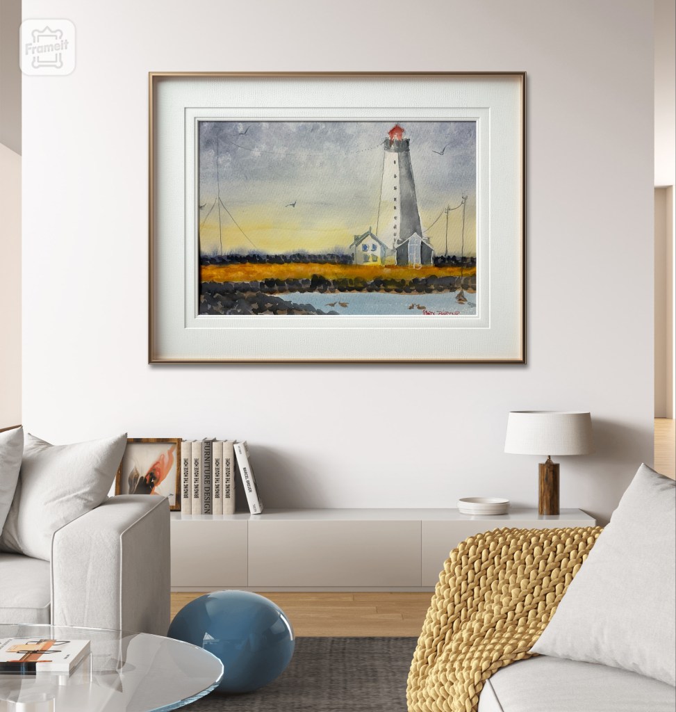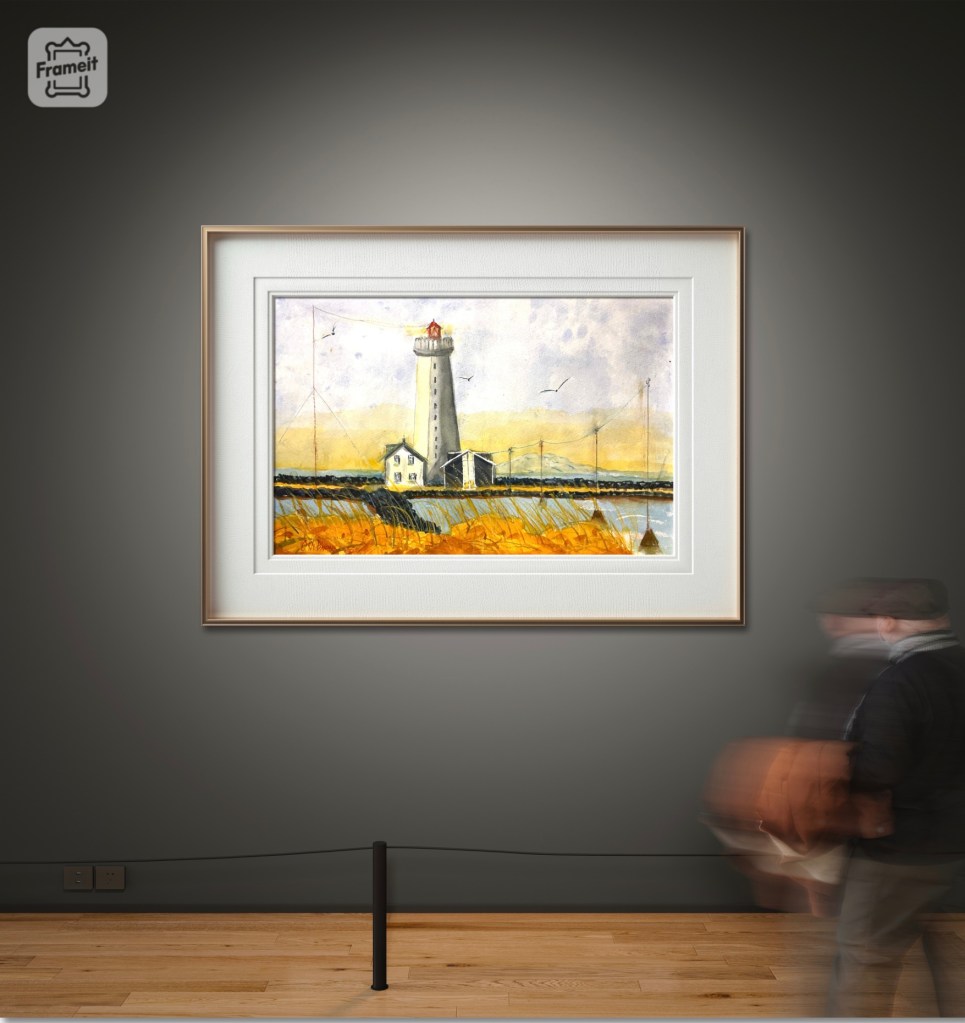 Pusar yfir grjótgarðinn – Grótta í desemberbirtu II -Stærð myndar B34 x H25 cm + karton