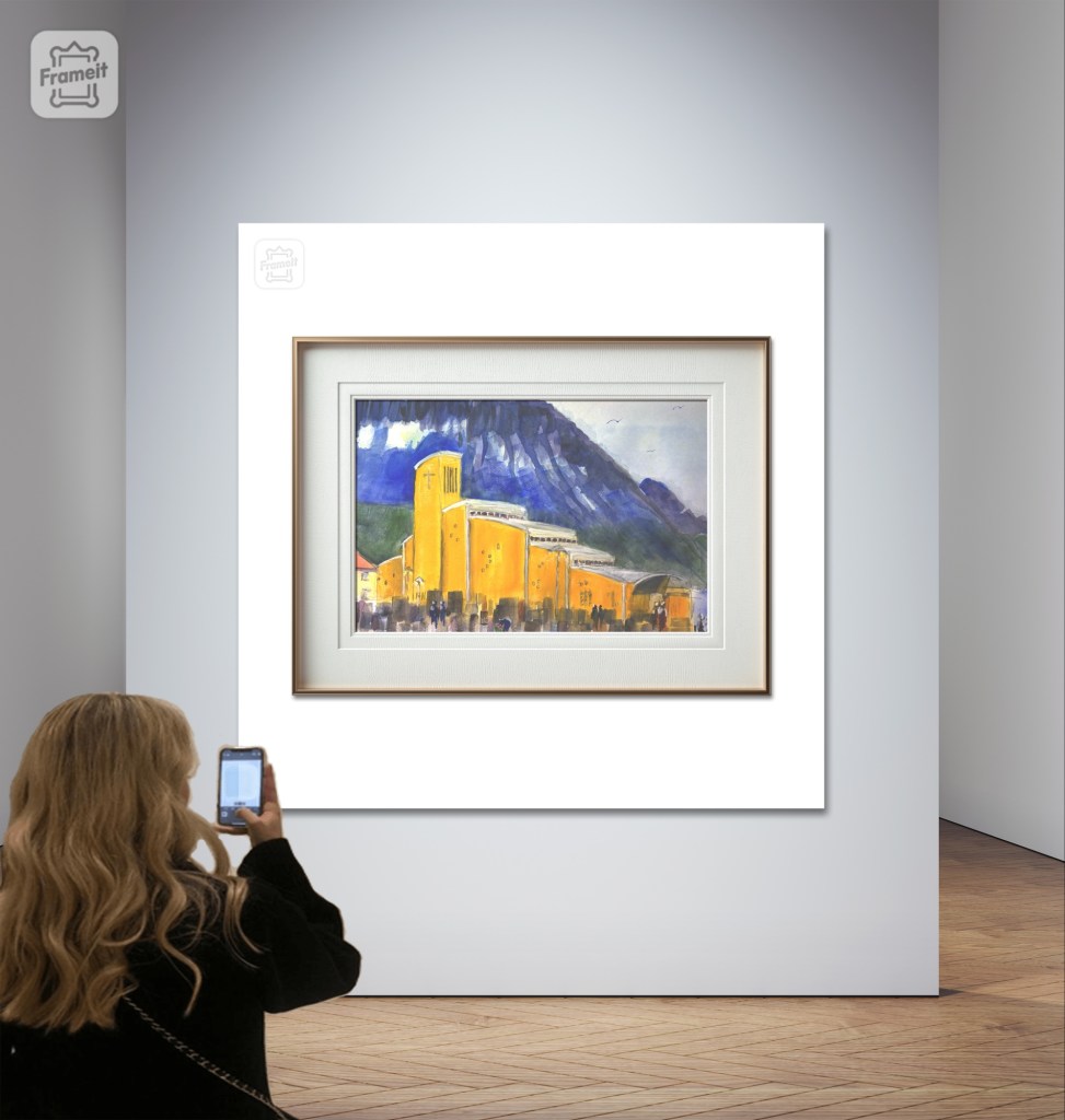 Lutheran/Protestant Parish Church at Ísafjörður, NW-Iceland – Watercolor by Örn Bárður Jónsson – Bard Art.