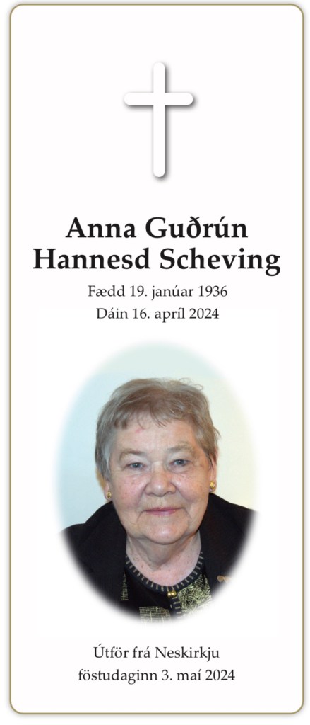 Guð blessi minningu Önnu Guðrúnar Hannesdóttur Scheving og Guð blessi þig sem enn ert á lífsveginum og nýtur ljóssins. Amen.