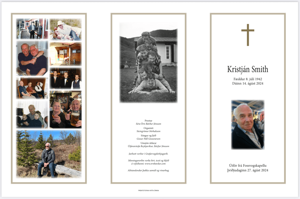 Við kveðjum Kristján Smith á þessum helga stað. Hann ber kristið fornafn og ættarnafnið vísar til smíða og svo var hann iðnaðarmaður og margt lék í höndum hans.