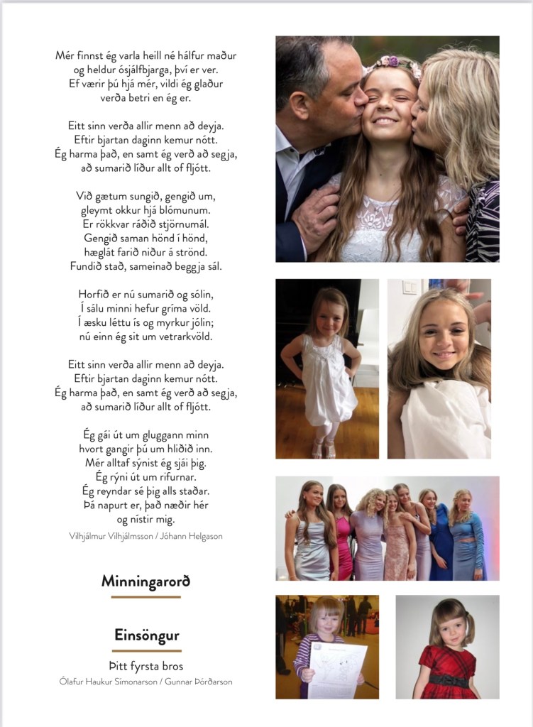 Og svo eru það minningarnar ykkar, kæru foreldrar og fjölskylda og ykkar líka, kæru skólasystkin og vinir hennar úr Verzló.