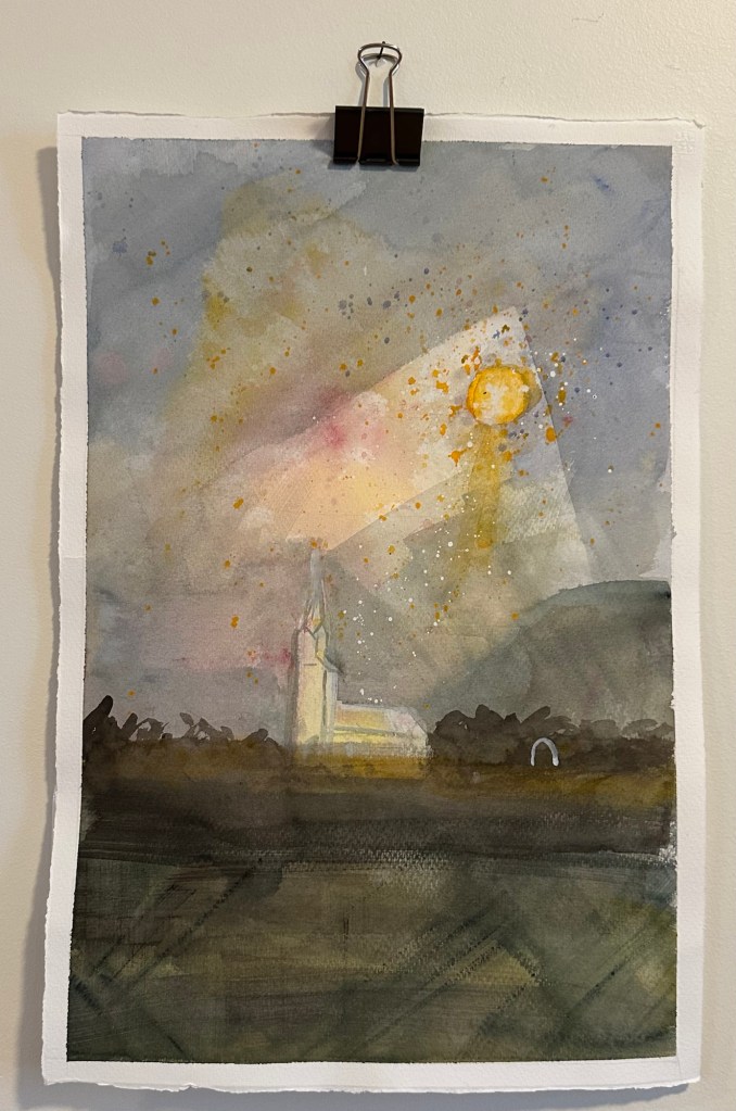 Birti hér nokkrar vatnslitamyndir sem hafa orðið til á Hofi í Vopnafirði í byrjun árs 2025