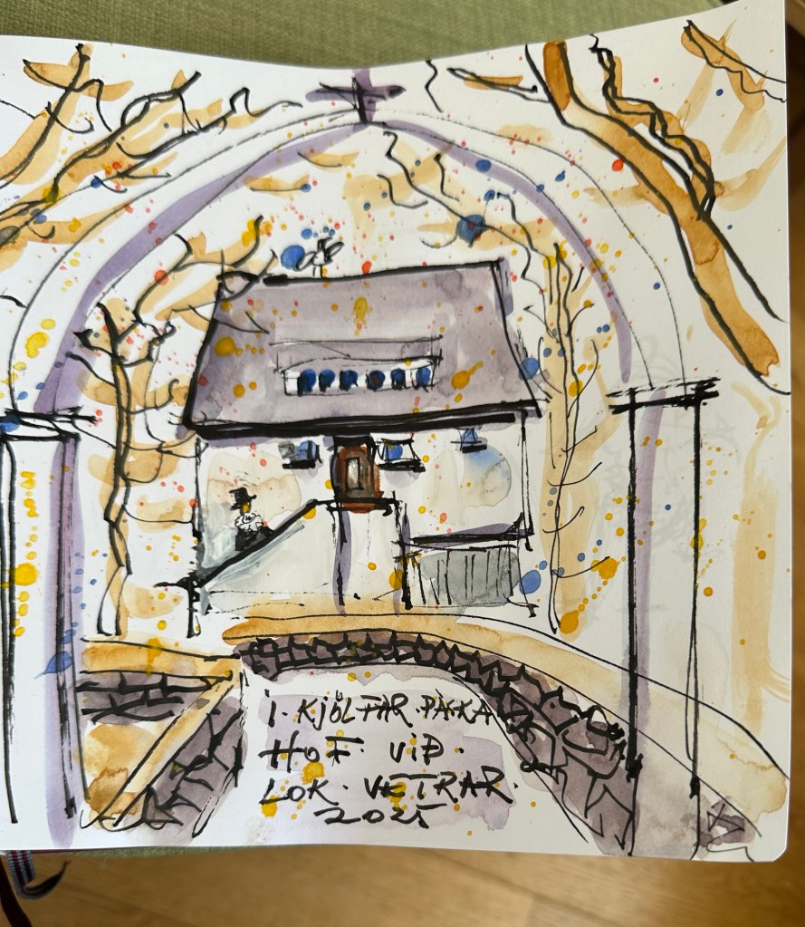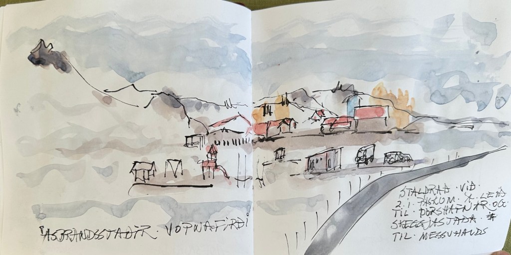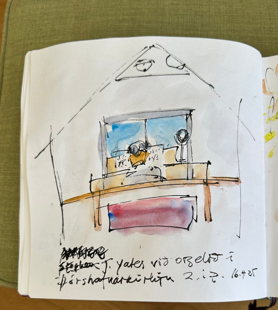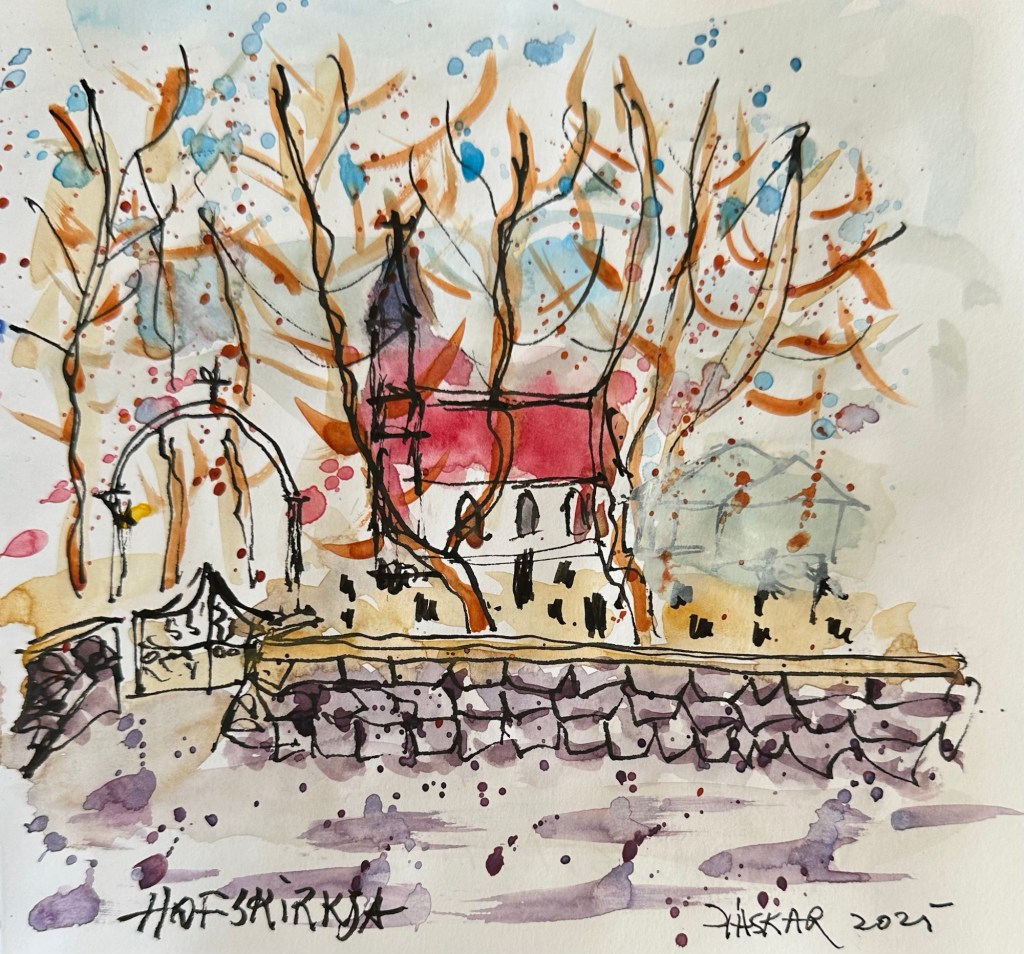 Hofskirkja undir lok vetrarPassíusálmalestur í Hofskirkju, föstudaginn langaStaldrað við á leið út á Tanga – Ásbrandsstaðir í HofsárdalStepen J. Yates við orgelið á kirkjuloftinu í Þórshafnarkirkju á 2. í páskumTekin gröf að Hofi – frost í jörðuSkissuæfing af ímynduðum hjólreiðamönnumPrestssetrið að Hofi teiknað í gegnum sáluhliðið og klerkur skáldaður inn í myndina í hempu og með pípuhatt!