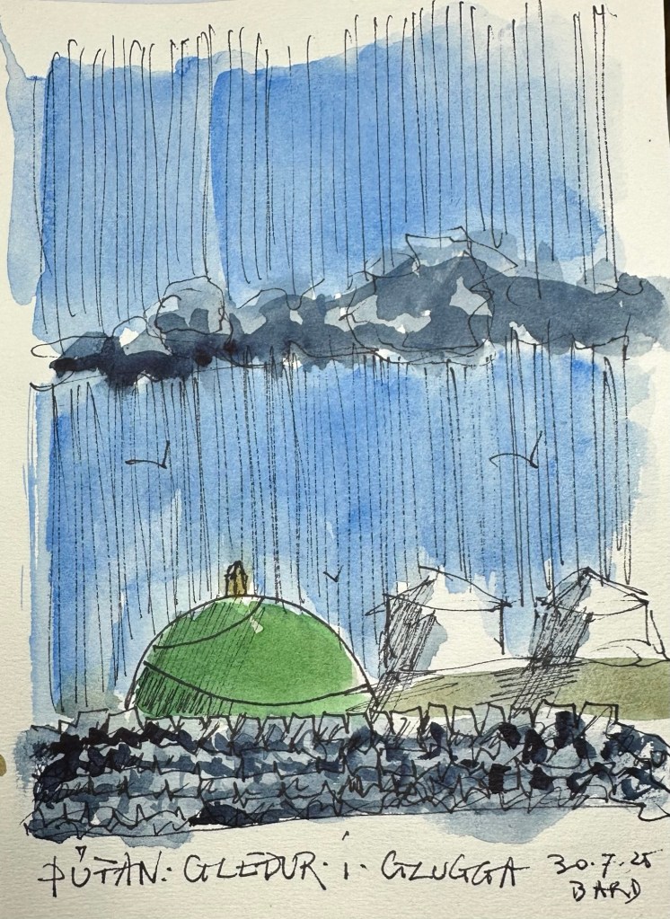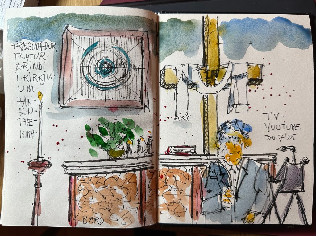Ég kynntist félagsskapnum Urban Sketchers árið 2013 og tengdist honum á Netinu. Hann heldur utan um fólk sem hefur gaman af að skissa, einkum úti. Pappír, blýantur, penni og önnur einföld verkfæri eru notuð. Sumir lita og nota þá vatnsliti eða aðra miðla. Málið er að teikna á staðnum.
