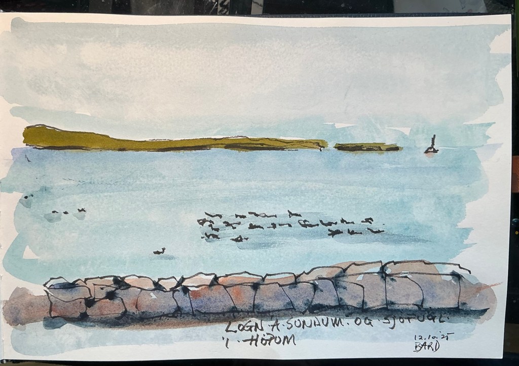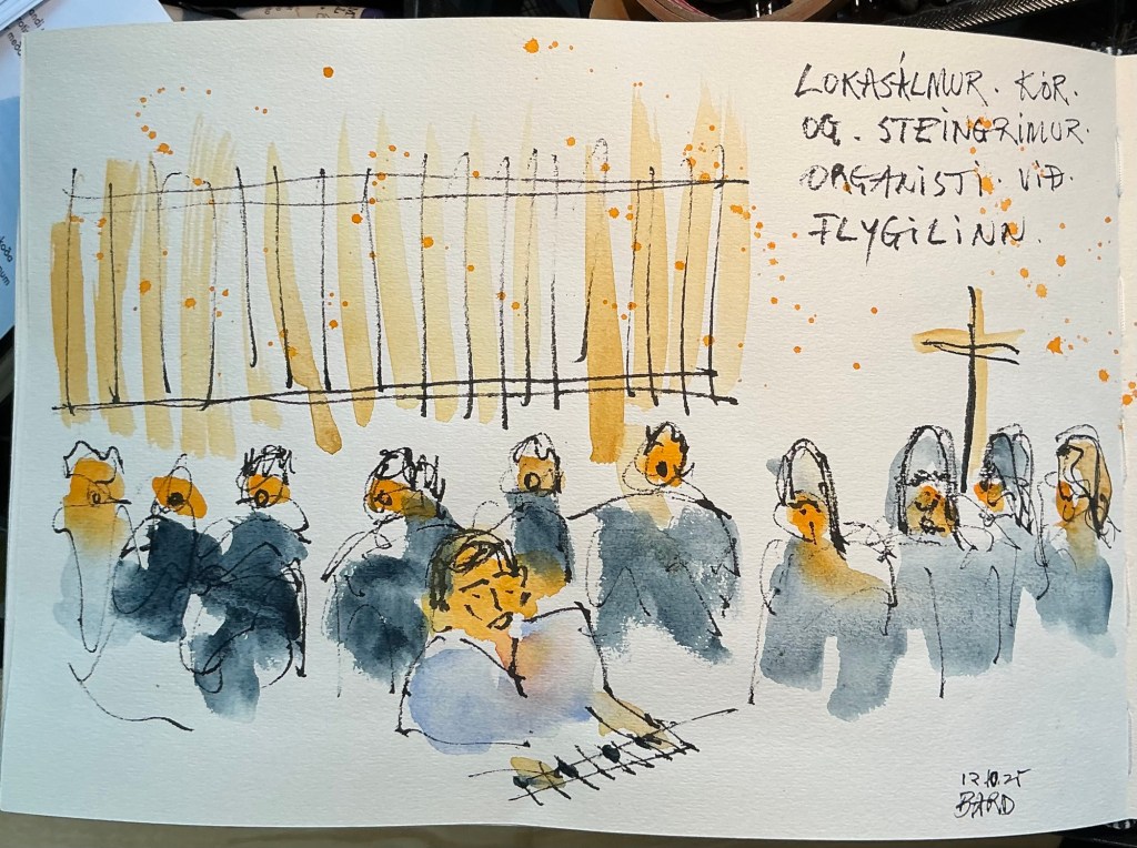 Myndirnar úr Neskirkju teiknaðar af aftasta bekk og mótífin öldnum augum því nokkuð langt í burtu!