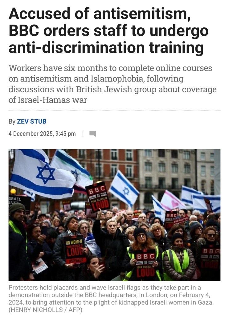 Nú skal halda námskeið fyrir fréttamenn BBC til að vinda ofan af gyðingahatri þeirra og fá þá til að ná jafnvægi svo stöðin verði ekki í framtíðinni einhliða áróðursmaskína Hamas eins og hún hefur verið um all langa hríð.