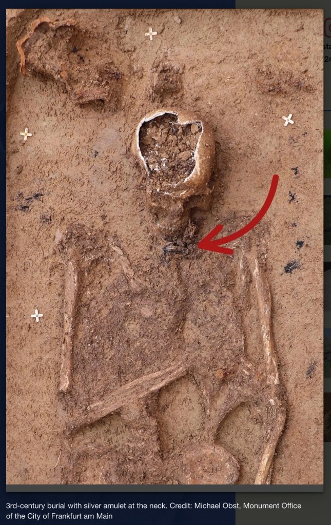 Í kyrrlátri gröf nálægt Frankfurt í Þýskalandi var maður lagður til hvíldar um árið 250 e.Kr. Undir höku hans var hans hinsta eign: lítill, 3,8 cm silfurhólkur á snúru. Í aldaraðir var leyndarmálið – þétt rúlla úr silfurpappír – læst inni, of brothætt fyrir fornleifafræðinga að opna án þess að eyðileggja það.