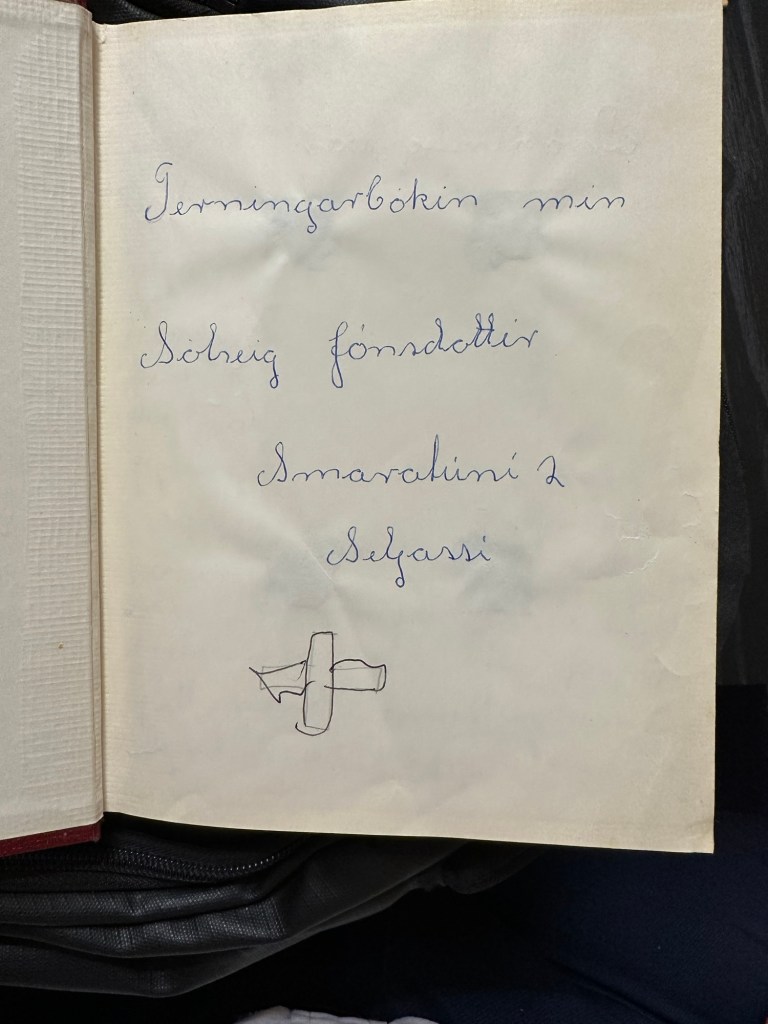 Ég fékk að fletta vinnubók Sólveigar sem hún vann svo
