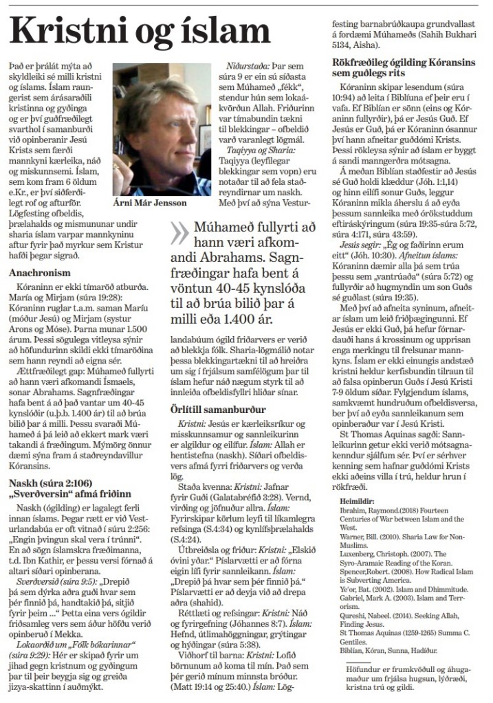 Merkileg grein þar sem höfundur ber saman kristni og islam með raunverulegum tilvísunum í kenningar beggja.